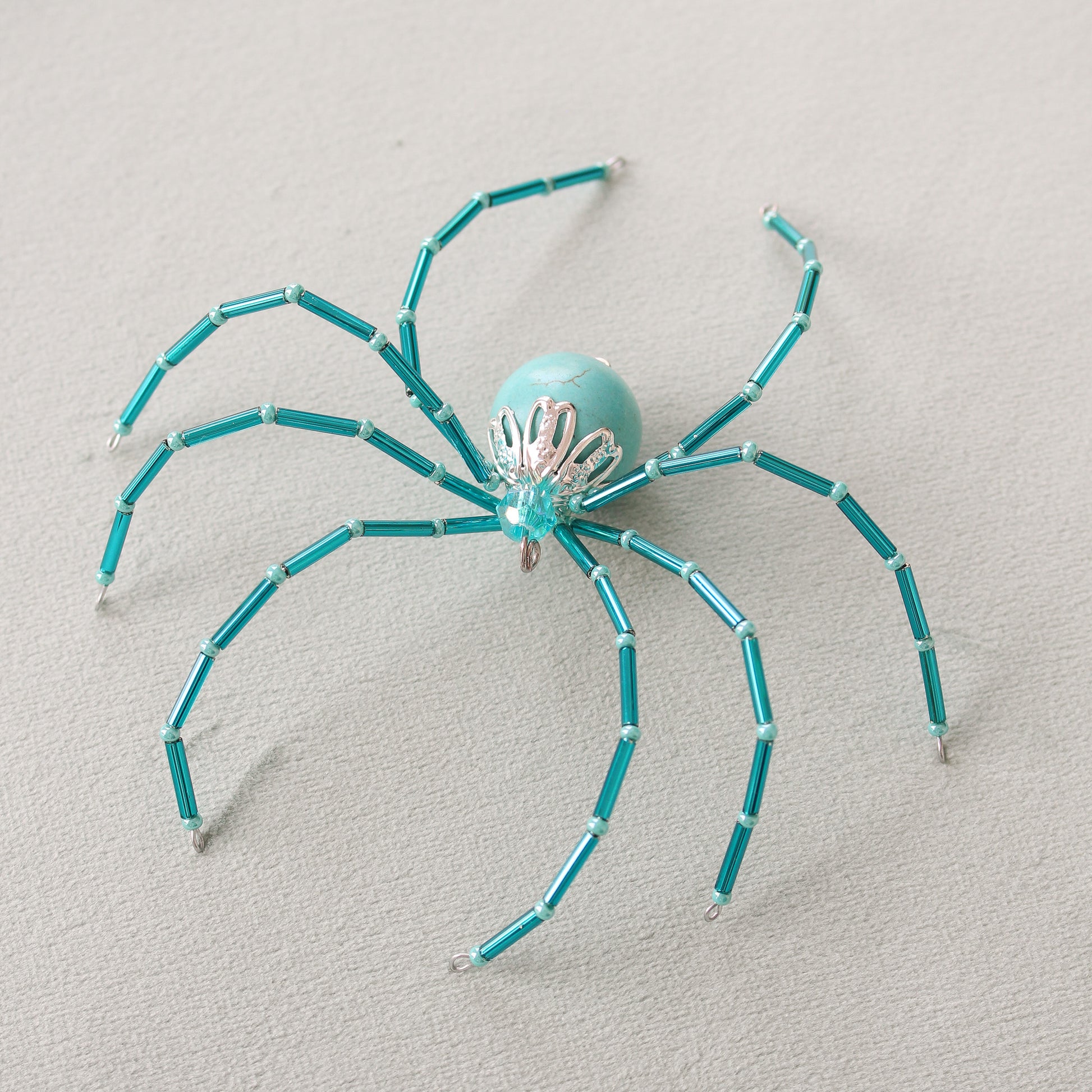 Beaded Christmas Spider Ornament - Aqua + Teal