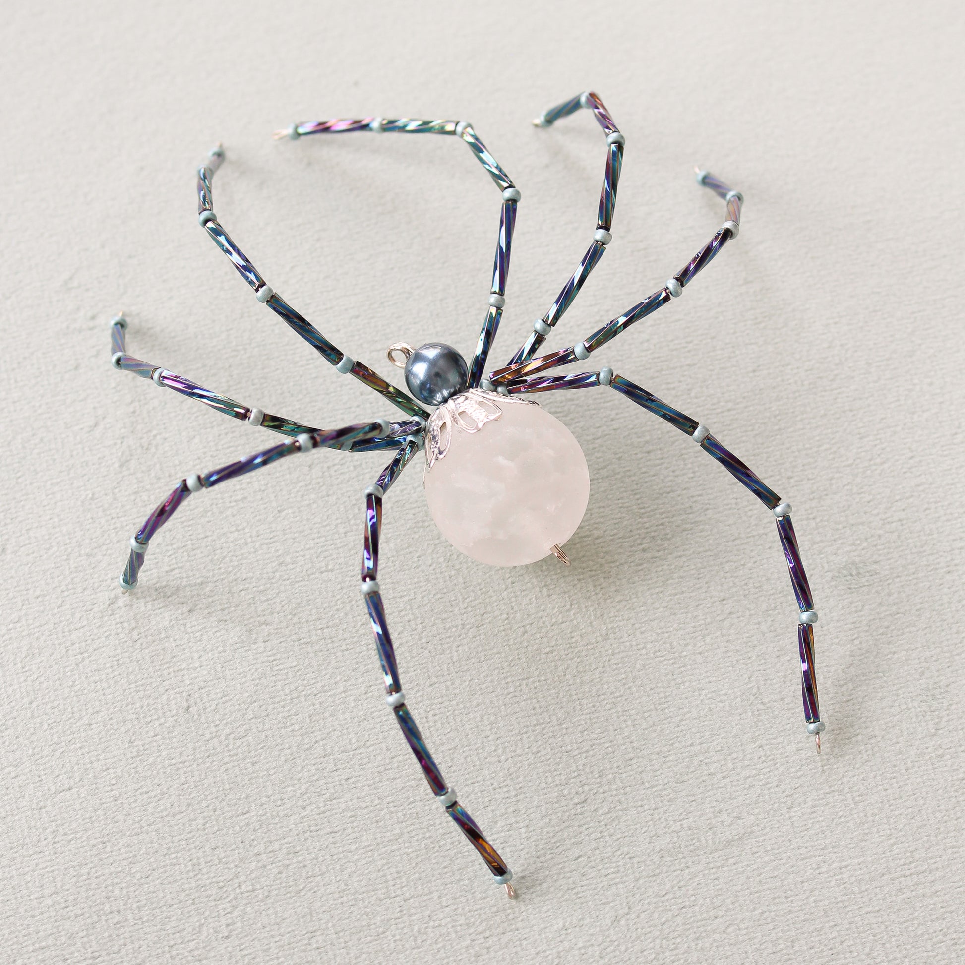 Beaded Christmas Spider Ornament - Quartz + Silver